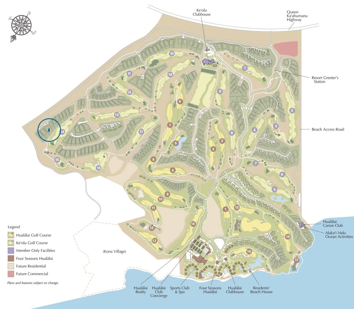 Set on a bluff overlooking the 14th fairway and green of the Members-only Ke‘olu Golf Course, with sweeping ocean and Maui vies.